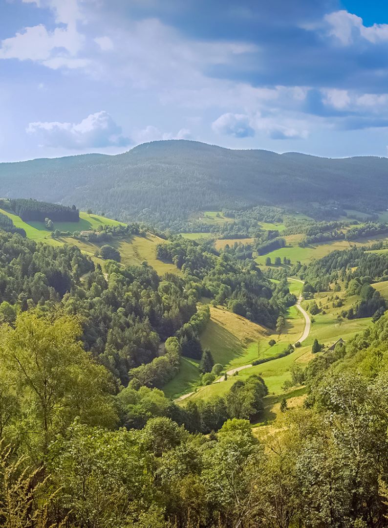 Fra den franske vinruten fortsatte vi inn i fjellregionen Vogesene. Jeg hadde valgt den kjente “Route des Crêtes”, også kjent som Vogesenes fjellkamvei. Den er en av de mest imponerende fjellveiene i Frankrike og går langs hovedryggen i den sørlige delen av Vogesene, på nesten 1 200 meters høyde og med en total lengde på 75 kilometer. Veien ble opprinnelig bygget av franske tropper under første verdenskrig som en forsyningsvei. Det kan fortsatt ligge snø her helt til april, så det anbefales å kjøre bobil her mellom mai og oktober.